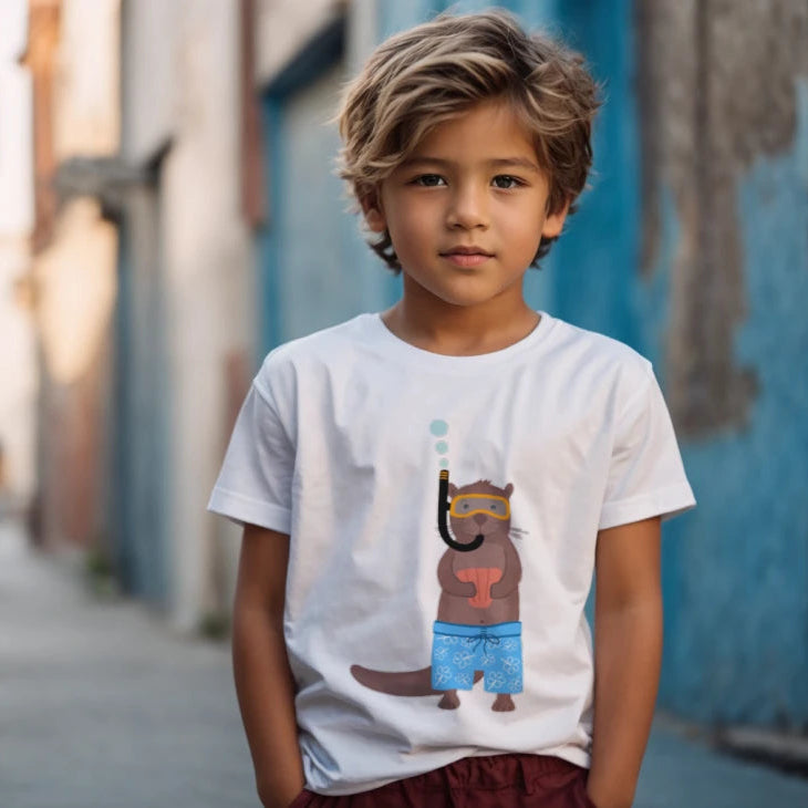Dive into adorable style with our Snorkeling Otter tee! This charming design features a cute sea otter ready for underwater adventures with its very own snorkel. Made with soft, comfy fabric, it's perfect for little explorers and animal lovers.